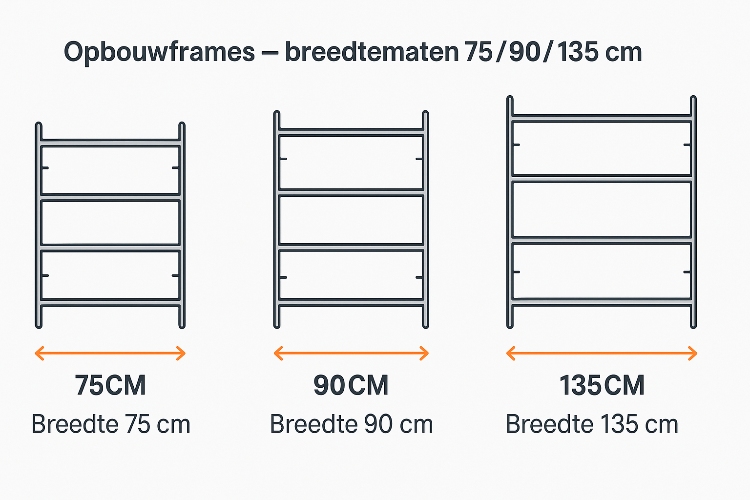 Los van de hoogte van een steigerframe heb je ook nog de mogelijkheid om te kiezen uit de breedtes. Zo zijn de volgende breedtes verkrijgbaar: 135CM, 90CM en 75CM.